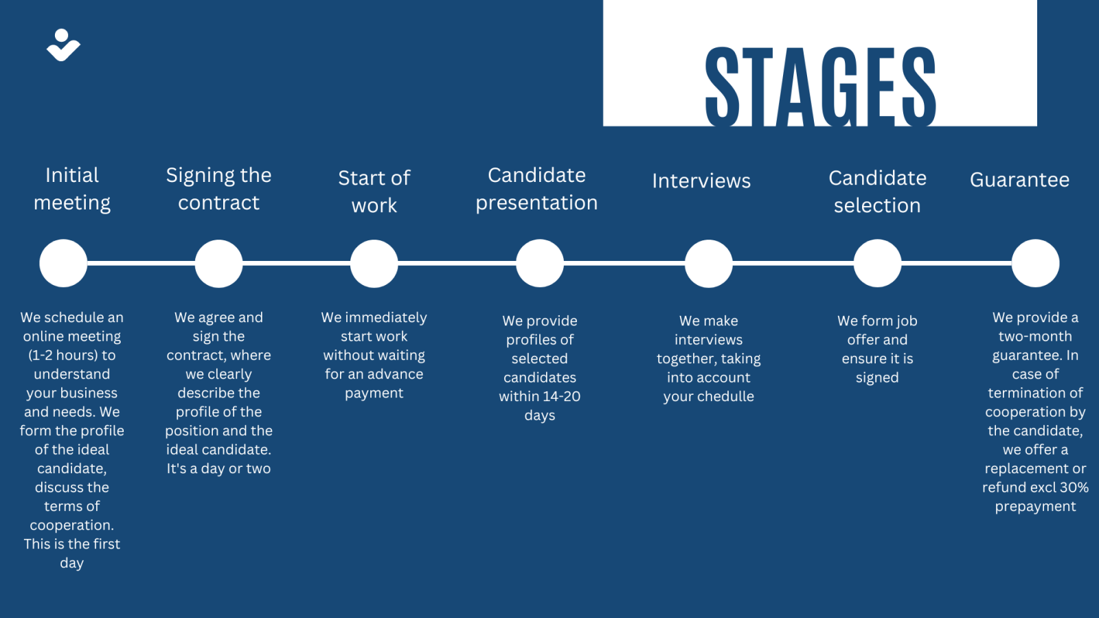 - Company Name Disclosure: We never disclose the name of your company to the candidate until the final stages of recruitment, and only with your prior approval.